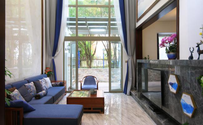 白天的自然光與夜晚的燈光氛圍形成鮮明對比,自然光下硬裝材質的紋理細膩,燈光映襯下有了凹凸質感。