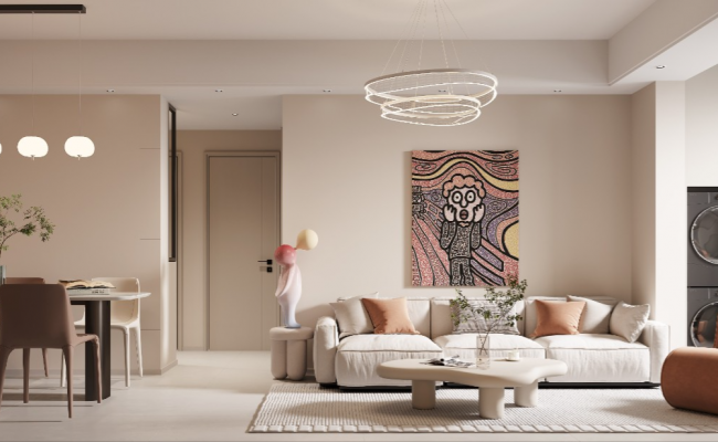 整體設計摒棄傳統中式的厚重繁復,以現代手法轉譯東方元素,在滿足現代居住功能的基礎上,賦予空間雅致的文化底蘊與舒適的居住體驗。